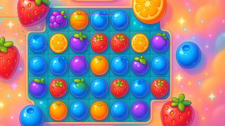 A vibrant collection of match-3 games featuring a colorful cast of fruits and exciting bonus levels.